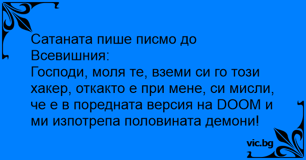 • Вицове от Facebook от нашата страница https://www.facebook.com/www.vic.bg