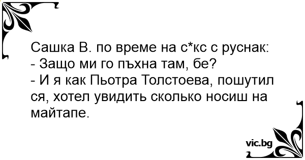 - И я как Пьотра Толстоева, пошутил ся, хотел увидить сколько носиш на майтапе.
