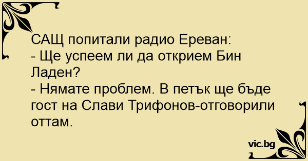 • Вицове от Facebook от нашата страница https://www.facebook.com/www.vic.bg