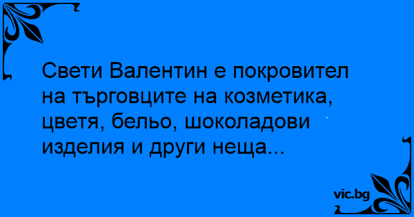 Свети Валентин е покровител на търговците на козметика, цветя, бельо, шоколадови изделия и други неща...