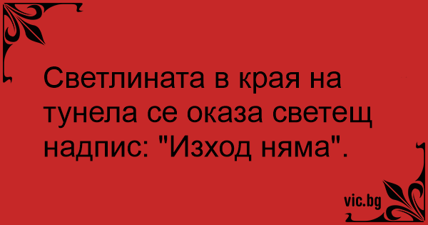 Светлината в края на тунела се оказа светещ надпис: "Изход няма".