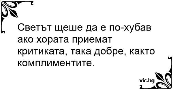 Светът щеше да е по-хубав ако хората приемат критиката, така добре, както комплиментите.