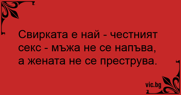 Свирката е най - честният cekc - мъжа не се напъва, а жената не се преструва.