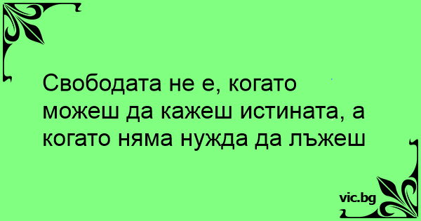 Свободата не е, когато можеш да кажеш истината, а когато няма нужда да лъжеш