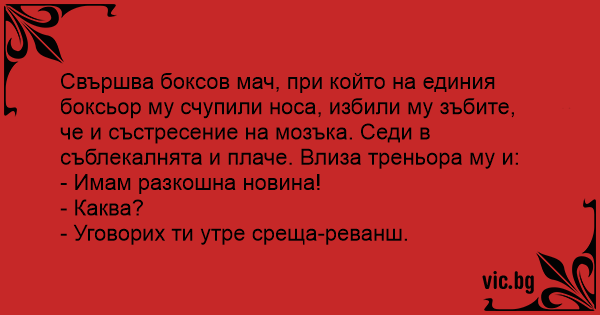 • Вицове от Facebook от нашата страница https://www.facebook.com/www.vic.bg