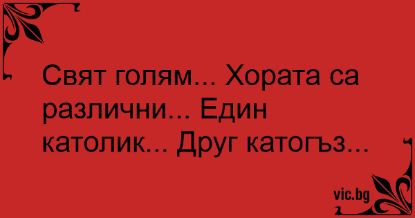 Свят голям... Хората са различни... Един католик... Друг катогъз...