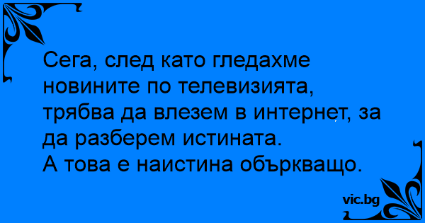 Сега, след като гледахме новините по телевизията, трябва да влезем в интернет, за да разберем истината.