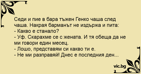 - Уф. Скарахме се с жената. И тя обеща да не ми говори един месец.