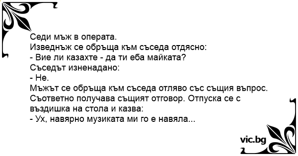 • Вицове от Facebook от нашата страница https://www.facebook.com/www.vic.bg