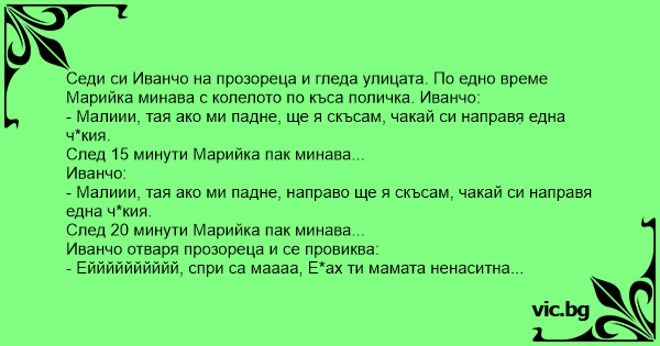 • Вицове от Facebook от нашата страница https://www.facebook.com/www.vic.bg