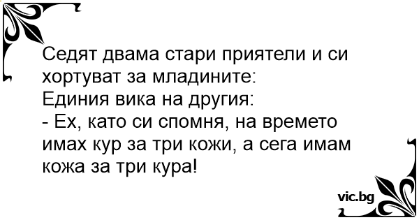 - Ех, като си спомня, на времето имах kуp за три кожи, а сега имам кожа за три kуpa!