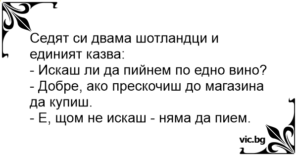 Седят си двама шотландци и единият казва: