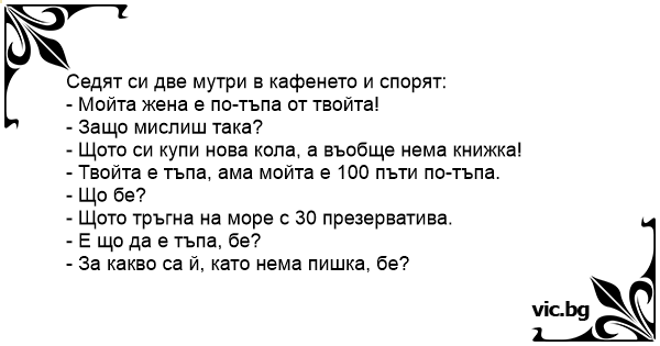 - Мойта жена е по-тъпа от твойта!