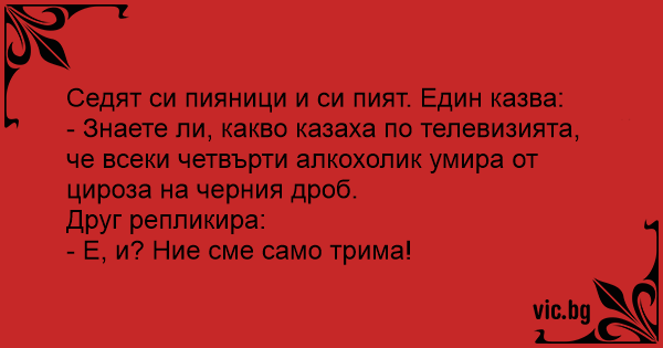 - Знаете ли, какво казаха по телевизията, че всеки четвърти алкохолик умира от цироза на черния дроб.