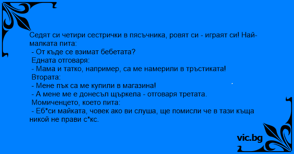 • Вицове от Facebook от нашата страница https://www.facebook.com/www.vic.bg