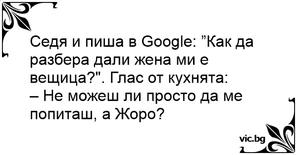 Седя и пиша в Google: ”Как да разбера дали жена ми е вещица?". Глас от кухнята: