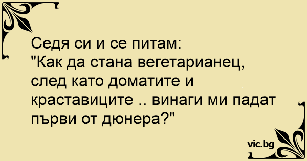 "Как да стана вегетарианец, след като доматите и краставиците .. винаги ми падат първи от дюнера?"