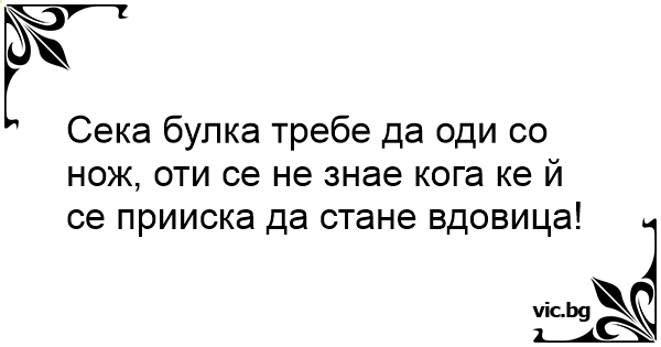 Сека булка требе да оди со нож, оти се не знае кога ке й се прииска да стане вдовица!