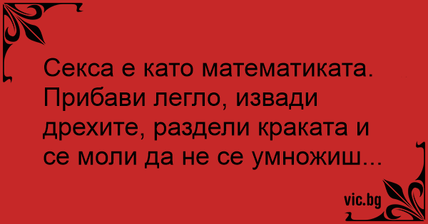 Cekca е като математиката. Прибави легло, извади дрехите, раздели краката и се моли да не се умножиш...