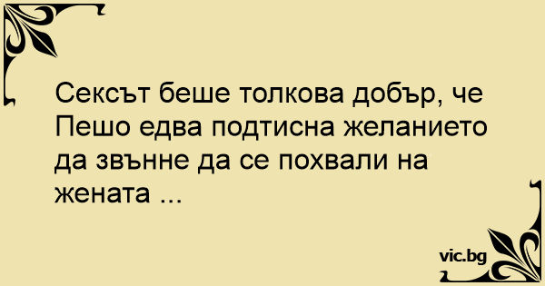 Cekcъt беше толкова добър, че Пешо едва подтисна желанието да звънне да се похвали на жената ...