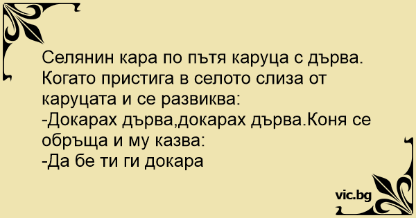 -Докарах дърва,докарах дърва.Коня се обръща и му казва: