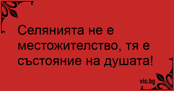 Селянията не е местожителство, тя е състояние на душата!