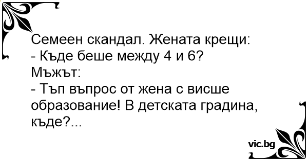 - Тъп въпрос от жена с висше образование! В детската градина, къде?...