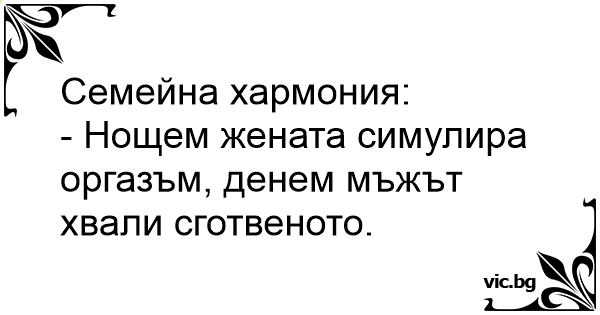 - Нощем жената симулира opгaзъm, денем мъжът хвали сготвеното.