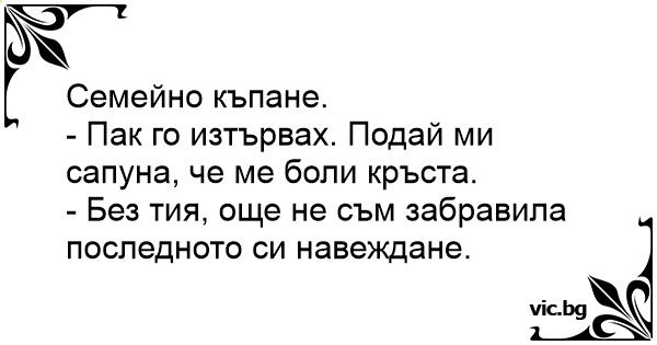 - Пак го изтървах. Подай ми сапуна, че ме боли кръста.