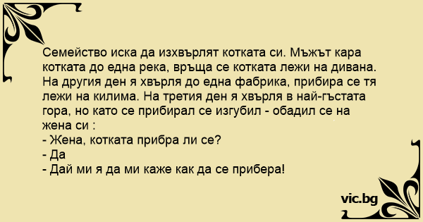 Един мъж решил да се отърве от котарака на жена си.