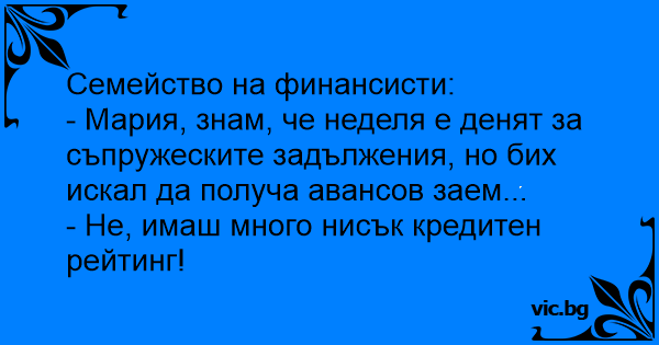 - Мария, знам, че неделя е денят за съпружеските задължения, но бих искал да получа авансов заем...