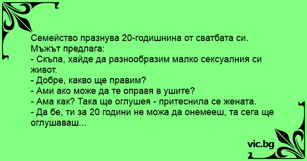 - Скъпа, хайде да разнообразим малко сексуалния си живот.