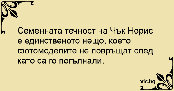 Семенната течност на Чък Норис е единственото нещо, което фотомоделите не повръщат след като са го погълнали.