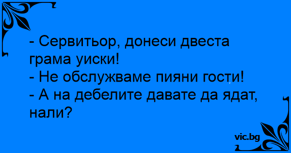 - Сервитьор, донеси двеста...