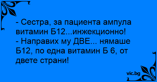 - Сестра, за пациента ампула витамин Б12...инжекционно!