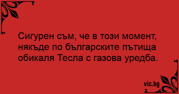 Сигурен съм, че в този момент, някъде по българските пътища обикаля Тесла с газова уредба.