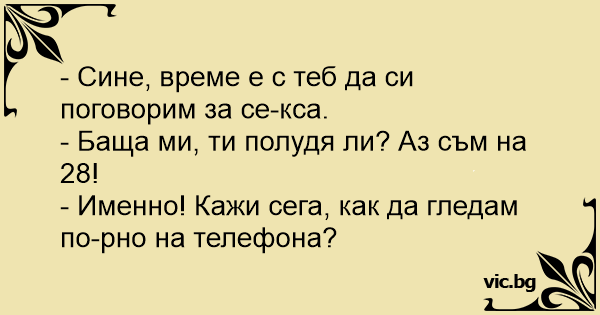 • Вицове от Facebook от нашата страница https://www.facebook.com/www.vic.bg