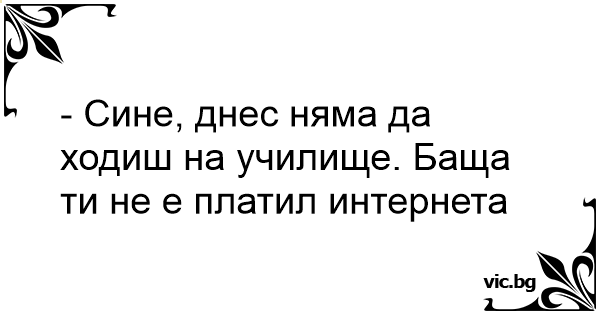 - Сине, днес няма да ходиш на училище. Баща ти не е платил интернета