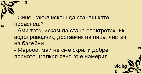 - Марооо, май не сме скрили добре порното, малкия явно го е намерил...