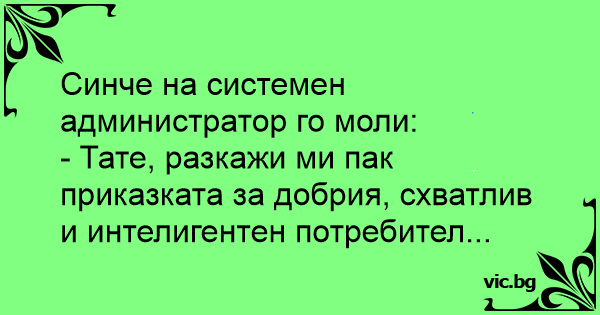 - Тате, разкажи ми пак приказката за добрия, схватлив и интелигентен потребител...