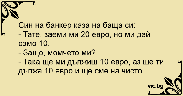 - Тате, заеми ми 20 евро, но ми дай само 10.