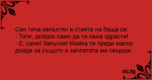 Син тича запъхтян в стаята на баща си: