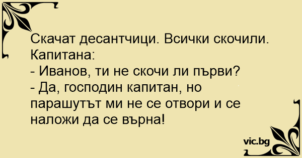 - Да, господин капитан, но парашутът ми не се отвори и се наложи да се върна!