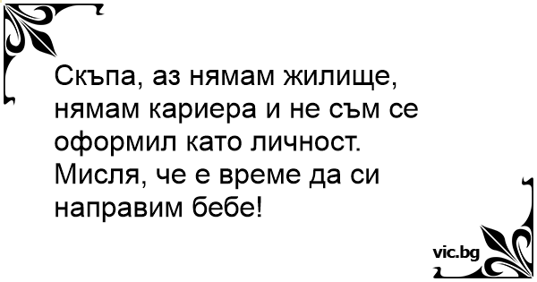 Скъпа, аз нямам жилище, нямам кариера и не съм се оформил като личност.