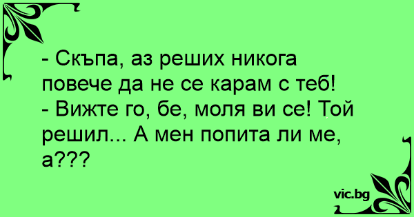 - Скъпа, аз реших никога повече да не се карам с теб!