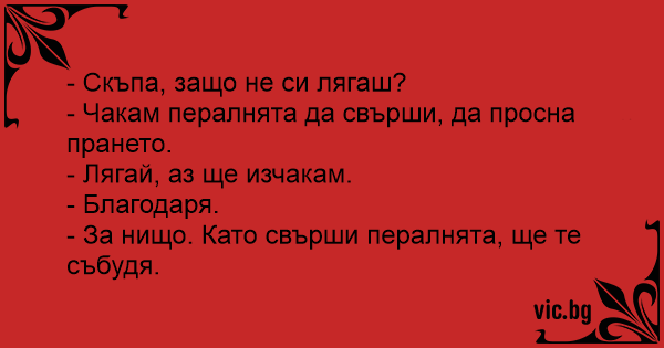 - За нищо. Като свърши пералнята, ще те събудя.