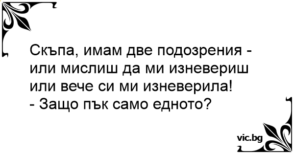 Скъпа, имам две подозрения - или мислиш да ми изневериш или вече си ми изневерила!