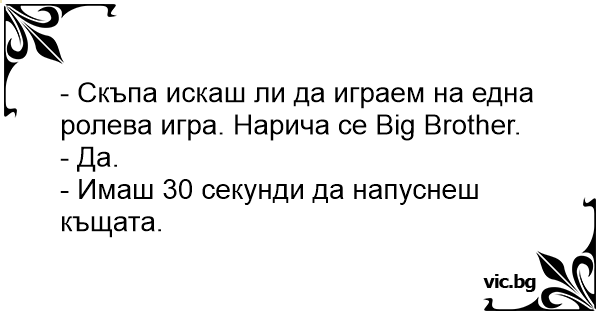 - Скъпа искаш ли да играем на една ролева игра. Нарича се Big Brother.