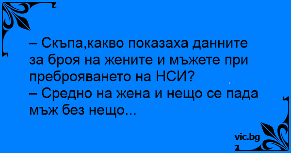 – Скъпа,какво показаха данните за броя на жените и мъжете при преброяването на НСИ?