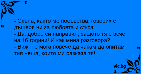 • Вицове от Facebook от нашата страница https://www.facebook.com/www.vic.bg